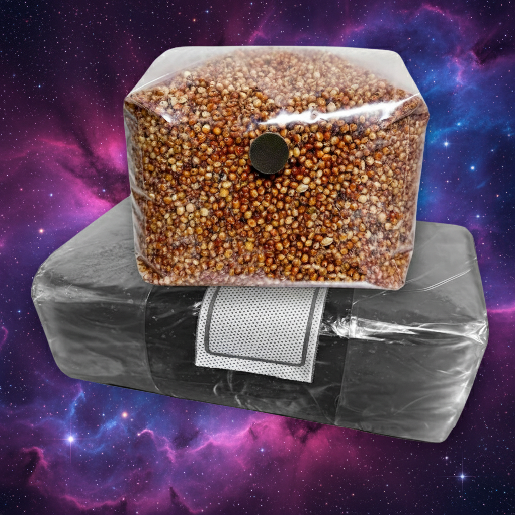 - 3 lb Sterile Milo Grain Bag – Hydrated, sterilized, sealed with self-healing injection port and filter patch